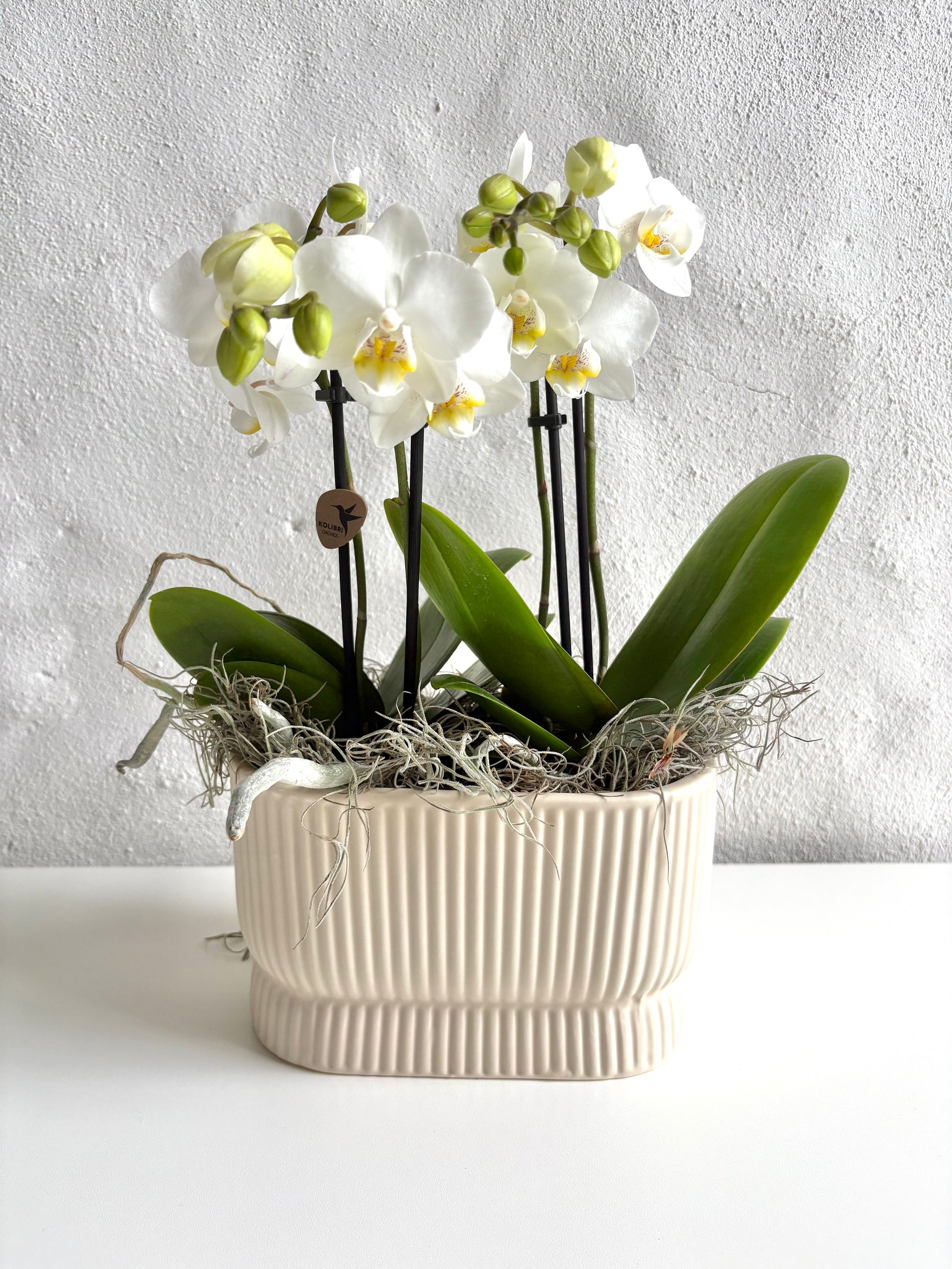 For a Mother’s Day gift that exudes elegance, our Luxury Orchid Arrangement is the perfect choice. Featuring a stylish white Phalaenopsis orchid presented in a chic ceramic container, this arrangement is both sophisticated and timeless.